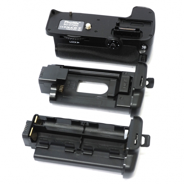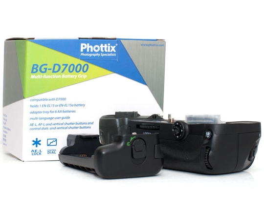 Батарейный блок Phottix BG-D7000 для Nikon D7000 повышает скорость съёмки и увеличивает время автономной работы. Эргономичная конструкция рукоятки батарейного блока позволяет более удобно держать фотокамеру при съёмке в вертикальном положении. В качестве источника питания блока используются шесть стандартных батарей типа АА или специальная аккумуляторная батарея EN-EL15 (в комплект не входит). Имеет кнопку дополнительного спуска затвора, кнопки AF/On и AE/On, кнопку питания, кнопки управления и многофункциональный диск управления для удобной съёмки в вертикальном положении. Имеется встроенный разъём для крепления штатива.