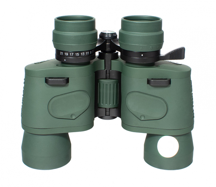 Благодаря рычажковому механизму бинокля происходит плавная смена увеличения в диапазоне от 7х до 21х, соответственно, меняется значение таких параметров как диаметр выходного зрачка, светосила и поле зрения. При минимальной кратности 7х наиболее удобно осуществлять общий обзор и поиск объектов, при максимальной кратности 21х – проводить детализацию выбранных объектов.