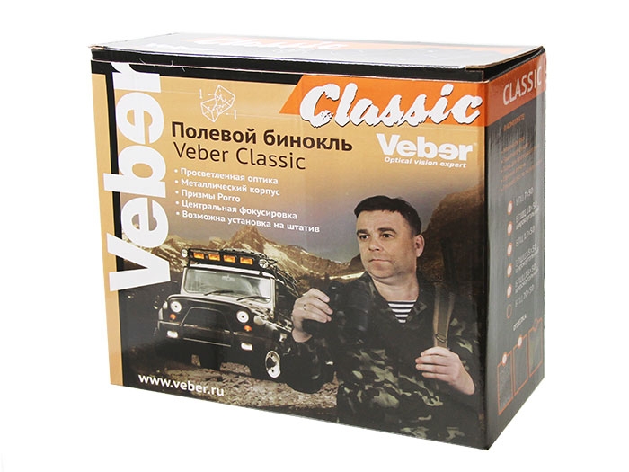 Бинокль Veber Classic БПЦ 7x50 имеет классические «военно-морские» оптические характеристики. Широкое поле зрения позволяет легко обнаружить и удерживать цель в поле зрения, например, при качке. Линзы объектива имеют диаметр 50 мм (они собирают в 2 раза больше света, чем линзы диаметром 35 мм), это позволяет вести наблюдение в глубоких сумерках. Бинокль Veber Classic БПЦ 7x50 имеет металлический корпус и трудноистираемое просветляющее покрытие на линзах объективов и окуляров.