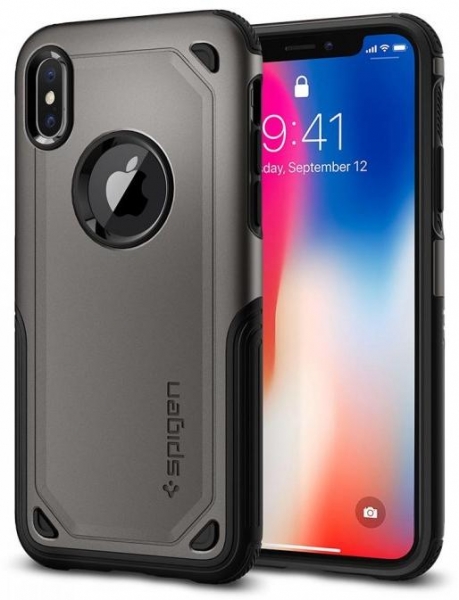 Чехол Spigen Hybrid Armor для iPhone X Spigen Hybrid Armor - это не только красивый и изящный дизайнерский чехол-накладка для iPhone X, но и его полная защита с любой стороны. Аксессуар идеально повторяет форму мобильного устройства и успешно оберегает его как от мелких царапин и потертостей, так и от серьезных повреждений, которые могут возникнуть в случае падения аппарата. Чехол отличается особой конструкцией для защиты от шоковых нагрузок и обладает специальными вырезами для полного доступа ко всем портам смартфона.. Чехол-накладка Spigen Hybrid Armor выполнен из высококачественного поликарбоната и материала TPU. Прозрачная накладка с воздушными камерами по углам отлично амортизирует и рассеивает удар при случайном падении мобильного устройства. Поликарбонатный прочный бампер сможет обеспечить не только жесткость конструкции, но дополнительную защиту. Защитный бортик передней крышки чехла приподнимает поверхность стекла на 0.9 мм для оптимальной защиты, тем самым повышая амортизационные свойства аксессуара, а дисплей получает дополнительную защиту.