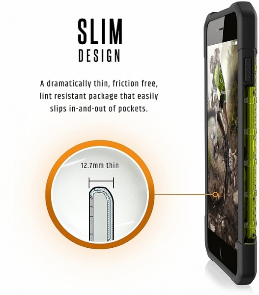 Чехол-накладка Urban Armor Gear Plasma имеет оригинальный дизайн и обеспечивает первоклассную защиту торцов и тыльной стороны iPhone 7 Plus. Его ультратонкая структура практически не увеличивает коммуникатор в размерах, однако при этом аксессуар способен защитить девайс даже при падении на бетон или асфальт. Чехол имеет усиленные углы и соответствует военному стандарту прочности USA Mil-Std 810G 516.6.