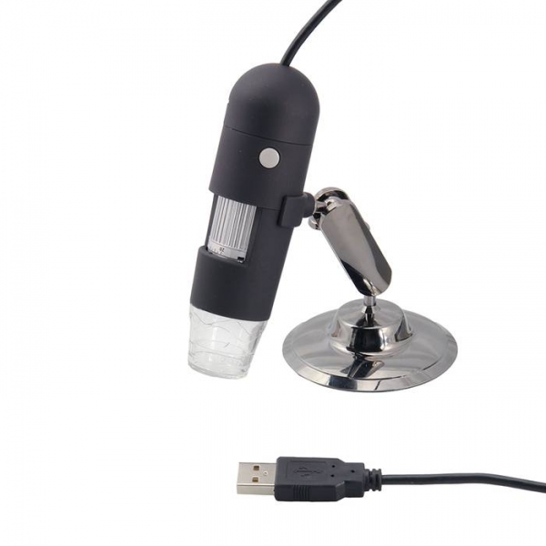Оснащен хромированным металлическим кронштейном, подключается к компьютеру через USB порт и не требует дополнительного питания. Конструкция кронштейна позволяет исследовать объекты под любым углом.