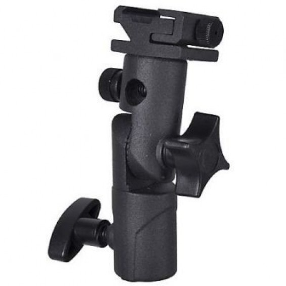 Переходник для установки накамерных фотовспышек (Canon, Nikon, и т.д.) на штативы или стойки для осветительных приборов с изменением угла наклона на 180 градусов. На установочной площадке имеется зажим для накамерной фотовспышки. Конструкцией предусмотрено отверстие для установки фотозонта. |
