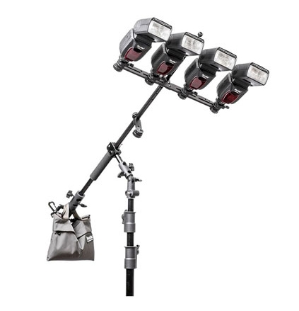 Внимание! при значительном угле наклона и большом количестве установленных вспышек на крепителе необходимо использовать противовес (например, мешок с песком). Для безопасности всегда пользуйтесь мешком с песком в качестве противовеса. Для небольших стоек, либо там, где могут возникнуть проблемы со стабильностью конструкции, вспышки могут быть установлены поблизости от основания крепителя Multi-Boom