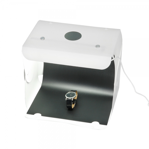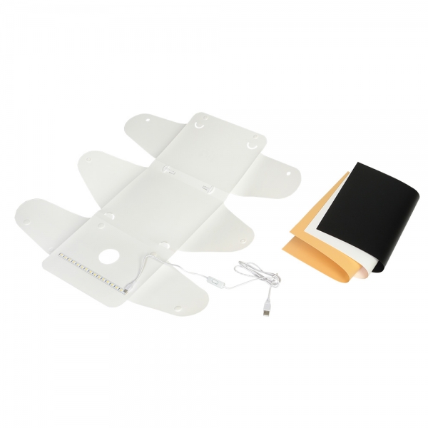 Фотобокс Falcon Eyes Macro Cube 25 LED Складной фотобокс Falcon Eyes Macro Cube 25 LED раскрывает новый уровень возможностей в мобильной фотографии, подходит для съемки небольших предметов и разработан для использования не только с фотокамерами, но и со смартфонами или планшетами. Фотобокс Macro Cube 25 LED позволяет получить снимки со студийным качеством, используя смартфон и простые настройки. Применяется в предметной съемке для интернет-магазинов, печатных рекламных каталогов и т.д. Фотобокс Macro Cube 25 LED является портативной мини-студией и представляет собой белую пластиковую складную конструкцию размером 25x24x22 см и светодиодную ленту на магнитах (15 светодиодов). Фотобокс легко складывается в кейс толщиной 2,5 см, а встроенная ручка делает его удобным для переноски. Перемещая магниты по верхней крышке фотобокса, можно легко отрегулировать положение светодиодной ленты, что позволит выбрать необходимое расположение подсветки без необходимости перемещения объекта съемки. Питание подсветки осуществляется с помощью USB кабеля, подключаемого к зарядному устройству или внешнему аккумулятору PowerBank (зарядное устройство и аккумулятор приобретаются отдельно). В комплект Macro Cube 25 LED входят белый, оранжевый и черный фоны для различных художественных эффектов.