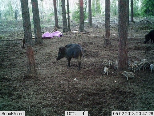 Цифровая камера слежения (фотоловушка) SunTek HC-500M HD с модулем GSM(GPRS) и невидимой вспышкой. Предназначена для контроля определенной зоны и автоматического фиксирования на фото или видеозапись всех происходящих в этой зоне событий. Работает полностью в автоматическом режиме. Делает высококачественные снимки (до 12 МП) или записывает видеоролики (в том числе и ночью благодаря встроенному ИК-подсветке в невидимом спектре ). Интервалы срабатывания камеры при постоянном движении в зоне наблюдения также задаются заранее. Влагозащищенный корпус камуфлированной окраски позволяет вешать камеру даже в лесу и оставлять там на длительное время, так как в режиме ожидания она может работать до 6 месяцев. Для крепления камеры предусмотрен специальный ремень и дополнительно защитный бокс с более гибкой возможностью крепежа под разным углом. Питание осуществляется 8 батарейками АА. Фото или видеозапись идет на карту SD (до 32 Гб) и отправляется Вам на телефон в виде MMS или на электронную почту через GPRS. Управление и настройка камеры осуществляется пультом ДУ, входящим в комплект.
