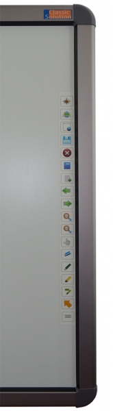Интерактивная доска Classic Solution CS-IR-89ten Classic Solution CS-IR-89ten широкоформатная интерактивная доска (78.7", сенсорная, одновременная поддержка 6 пользователей, 10 касаний), поддержка Widnows XP, Vista, 7, 8. Широкоформатная интерактивная доска Classiс Solution CS-IR-89ten поддерживает одновременную работу 6 пользователей, которые могут писать, рисовать, передвигать объекты пальцем, стилусом или указкой. В единицу времени доска поддерживает 10 касаний. Хотите, чтобы было как в айфоне - модель CS-IR-89ten поддерживает мультитач-функцию. Новинка поддерживает только операционные системы Windows: XP, Vista, 7, 8. Технология распознавания касаний, используемая в интерактивной доске Classic Solution 89ten, основана на оптической светодиодной технологии, когда приемники инфракрасного излучения считывают положение пальца, стилуса или указки на рабочей поверхности доски. Пары светодиодов и фототранзисторов покрывают рабочее пространство сеткой. При нажатии на поверхность луч инфракрасного излечения между светодиодами и фототранзисторами прерывается в точке нажатия. Такая позиция переводится в координаты "X" и "Y", которые компьютер впоследствии преобразует в положение мыши. Сама поверхность интерактивной доски Classic Solution CS-IR-89ten антибликовая и допускает использование магнитов и маркеров сухого стирания для белой доски. По бокам на интерактивной доске расположены ярлыки для быстрого доступа к наиболее часто используемым функциям.