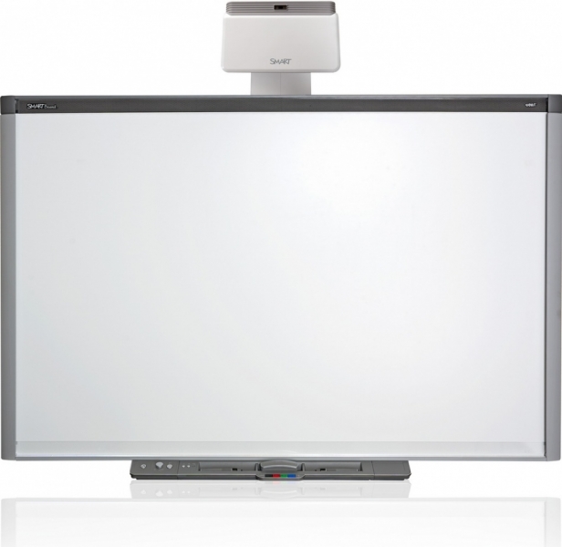 SMART Board X885i6 (диагональ 221 см) – очередная модель качественной интерактивной доски со встроенным в нее новым ультракороткофокусным широкоформатным мобильным проектором UF70w, размеры активной поверхности которой равняются 1880х1175 мм, применена сенсорная технология DViT (работа 2 пользователей одновременно). При создании доски использована технология DViT, в которой применяются 4 камеры. Благодаря этому на поверхности доски могут одновременно работать два пользователя. Управление доской поддерживается как маркерами, так и пальцами. Система отличается простотой установки и управления. Проектор устанавливается на специальном креплении, что позволяет уменьшить тень от пользователя и повысить комфорт работы с интерактивной доской SMART Board 885i6.