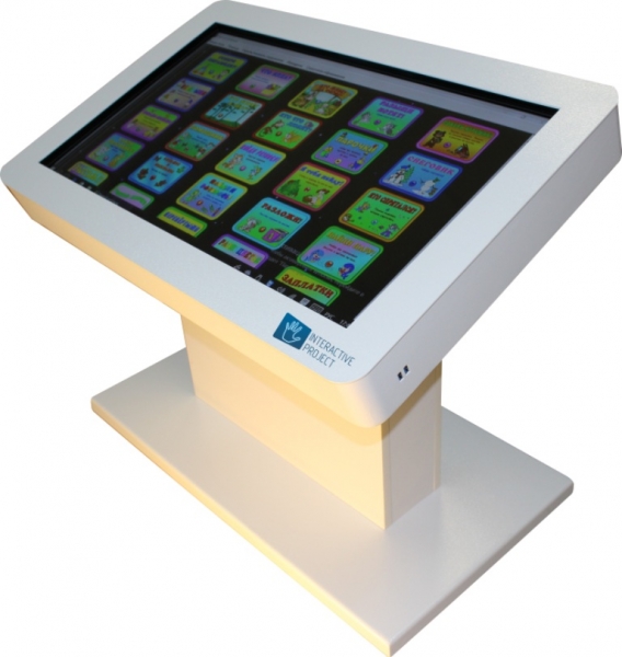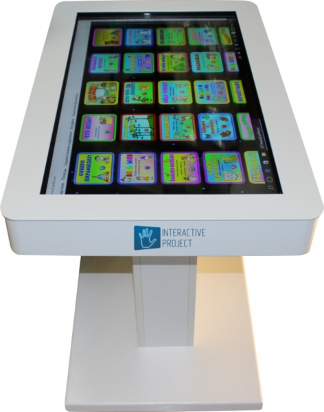 Интерактивный стол Project touch 32 создан в России, имеет металлический корпус без острых углов, специально для школ и других образовательных, и не только, учреждений. Диагональ дисплея составляет 81 см, такой размер позволяет двум-четырем пользователям, взаимодействовать со столом, не мешая друг другу. Интерактивный стол Project touch 32 имеет встроенный компьютер с установленным набором обучающих игр и акустику суммарной мощностью 20 Вт. Режим мультитач поддерживает 10 касаний одновременно. На боковой панели имеются два выхода USB 3.0.
