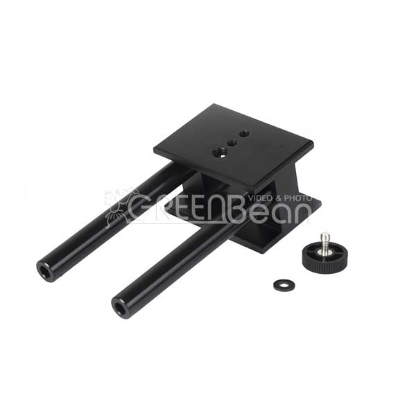 Предназначен для установки фотокамеры с дополнительными аксессуарами типа фоллоу фокуса, LED-осветителей и т.д. на штатив, риг и другие опоры. В основании имеются резьбовое отверстие 3/8 дюйма (одно) и 1/4 дюйма (два), верхняя площадка имеет винт – 1/4 дюйма и резьбовое отверстие 3/8 дюйма.