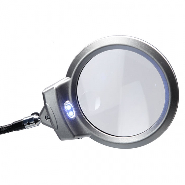 Настольная лупа с LED подсветкой широко применяется в радиомонтажных и ювелирных мастерских, в косметологических кабинетах, при работах с документами, в бытовых целях - для чтения, рисования, шитья, вышивания и т. д. Имеются две линзы: основная (диаметр 107 мм) с увеличением 2,25 крат и дополнительная (диаметр 25 мм) с увеличением 5 крат. В качестве подсветки используются 2 ярких светодиода, питание осуществляется от трех батареек типа ААА (в комплект не входят). Гибкая штанга (длина 25 см) позволит точно установить лупу на удобном для наблюдения расстоянии. В пластиковом корпусе основания находится металлическая вкладка, в которую вкручивается штанга - для долговечной эксплуатации и предотвращения опрокидыванию. Также имеется лоток для мелких принадлежностей.