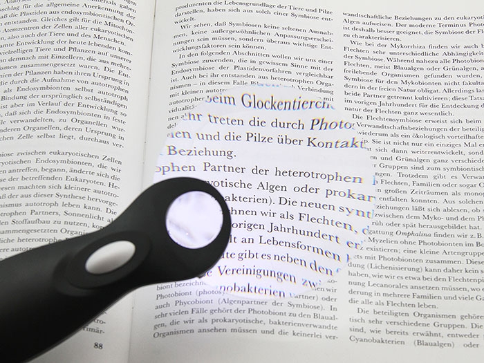 Подсветка — два светодиода. Питание — 2 батареи AA (в комплект не входят). Чехол в комплекте. Технические характеристики Увеличение, крат: 3-6 Диаметр линзы, мм: 90 Материал линзы: акрил Материал корпуса: пластик Вес, г: 80 |