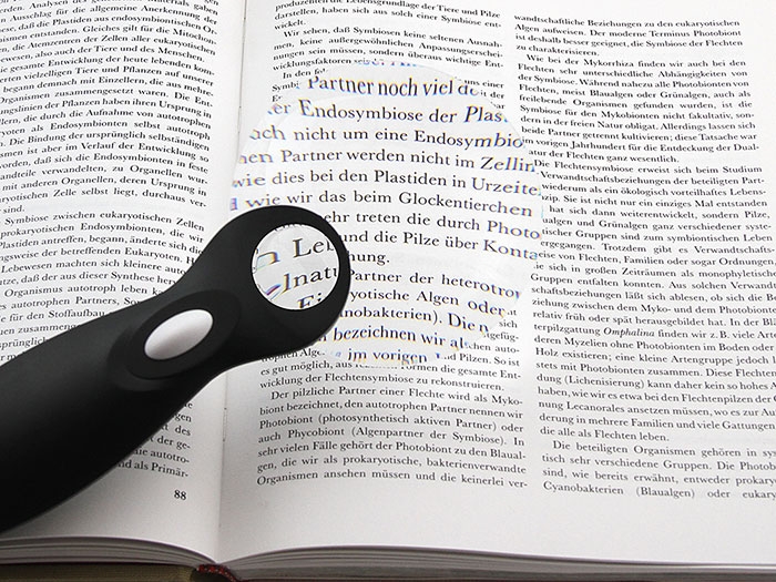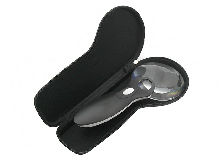 Veber G-288-090 - лупа с ручкой и подсветкой предназначена для чтения текстов, рассматривания карт, мелких рисунков, фотоотпечатков, шкал, схем и т.д. Подсветка — два светодиода. Питание — 2 батареи AA (в комплект не входят). Чехол в комплекте.
