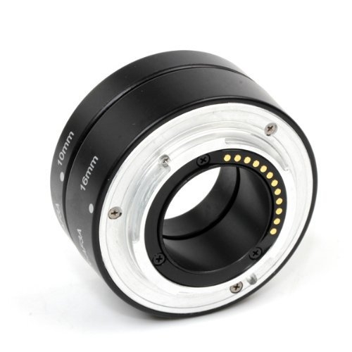 представляют собой цилиндр, который ставится между фотоаппаратом и объективом. Объектив удаляется от сенсора, что позволяет ему сфокусироваться ближе. Удлинительные кольца выпускаются для многих байонетов и резьбовых стандартов крепления объективов. Тем самым вы можете получить большое количество новых предметов съёмки на имеющемся оборудовании. Они не вносят дополнительных оптических элементов между предметом и сенсором камеры, таким образом минимизируя потенциальные потери качества изображения. С помощью макроколец вы можете создавать фантастические макро-фотографии, не покупая дорогостоящие макрообъективы. Набор состоит из макроколец разной длины, которые по отдельности или в сочетании позволяют делать фотографии на близком расстоянии (10 и 16мм). Чем больше колец будет добавлено, тем ближе будет фокус и тем выше увеличение.