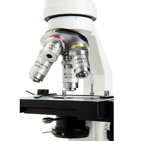Цельнометаллический корпус этого микроскопа оснащен ручками грубой и точной фокусировки, гарантирующие точную фокусировку, что в сочетании с качественной стеклянной оптикой, обеспечивает высокое качество изображения и длительный срок эксплуатации микроскопа. В комплект поставки включены 10 подготовленных микропрепаратов, позволяющие моментально погрузиться в захватывающий мир открытий. Двухкоординатный предметный столик с коаксиальными рукоятками позволяет быстро найти нужный фрагмент микропрепарата, а нанесенные нониусы на предметном столике, позволят Вам, быстро найти нужный фрагмент даже если Вы меняли микропрепарат. Конденсор Аббе в сочетании с ирисовой диафрагмой позволит Вам легко отрегулировать яркость подсветки, для получения оптимального изображения. Микроскоп может найти широкое применение в учебном процессе, как в школе, в колледже так и высших учебных заведениях. Возможность работы от батарей позволяет использовать микроскоп на уроках, проводимых на улице. Такой микроскоп может использоваться и для научных изысканий, в промышленных лабораториях.