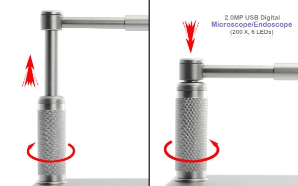 Модель объединяет в себе функции микроскопа и эндоскопа. Среди преимуществ перед аналогами — камера с высоким разрешением, надежный корпус и штатив из металла. Штатив оснащен механизмом плавной фокусировки. Благодаря тонкому корпусу микроскопа (диаметр 8 мм!) может применяться для изучения труднодоступных мест, куда при помощи обычного микроскопа не добраться. Программное обеспечение позволяет в любой момент наблюдения сделать фотографию или записать видеоролик процесса исследования.
