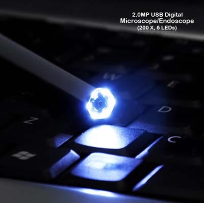 Цифровой микроскоп USB "Микрон эндоскоп" 2 Mpix (200 X Zoom, 6 LEDs) оборудован цифровой камерой CMOS-типа. Камера заменяет собой окуляр и соединяется с компьютером посредством USB кабеля. Это позволяет увидеть увеличенное изображение на экране компьютера или ноутбука в режиме реального времени, так как скорость передачи данных по порту достигает 480 Мбит/сек. Благодаря этой цифровой камере можно отказаться от традиционного метода работы с микроскопом (уткнувшись в окуляр) и просматривать изображение микроорганизмов на большом экране монитора. Это комфортнее, удобнее и безопаснее для здоровья. Кроме того, благодаря цифровой камере, микроскоп можно использовать для коллективного наблюдения за микромиром. В частности, изображение с него можно вывести на большой экран учебного проектора.