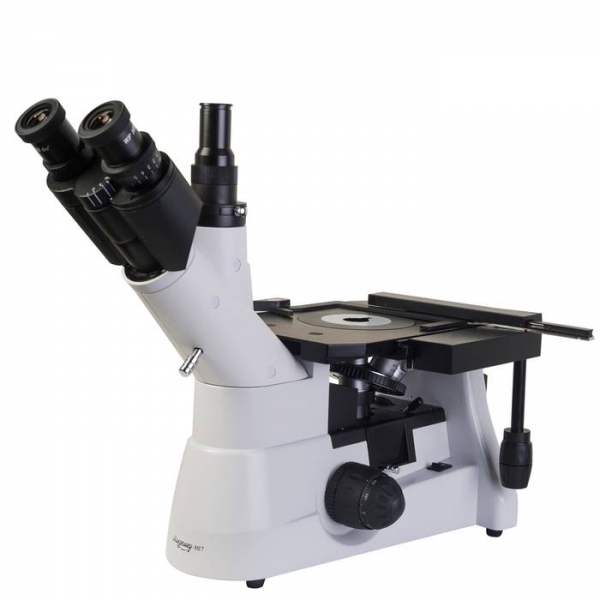 Микроскоп применяется для контроля качества металлов и сплавов и исследования их структуры. Инвертированное строение позволяет исследовать габаритные объекты. Фокусировка осуществляется за счет перемещения по вертикали револьверного устройства, а не предметного столика, что снимает с исследуемых объектов ограничение по массе.