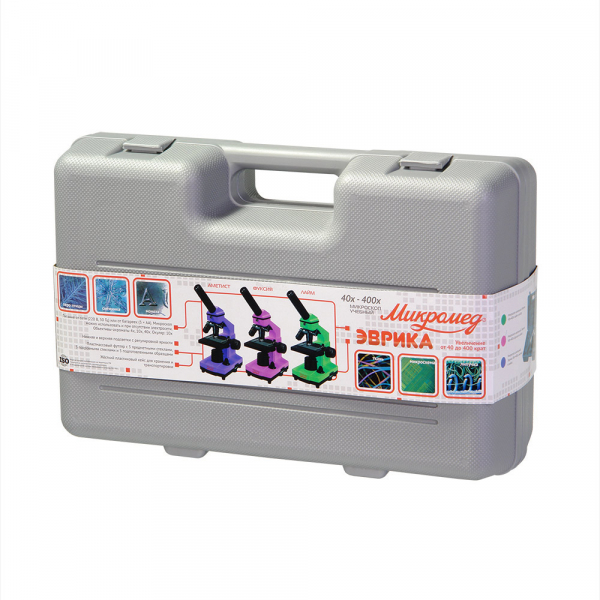 • Микроскоп школьный Эврика 40х-400х в кейсе (лайм)