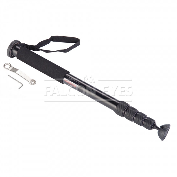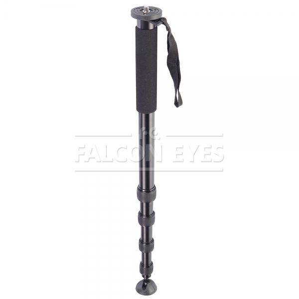 Falcon Eyes MP-18 — легкий, высокий, пятисекционный монопод, предназначен для установки камер весом до 8 кг. Использование монопода имеет ряд преимуществ относительно штатива: малый вес, компактные размеры и мобильность в работе. Возможна установка штативной головы с установочной резьбой 3/8" или 1/4", диаметр площадки под штативную головку — 55 мм. Рекомендуется устанавливать на монопод штативные шаровые головы серии BH. Пять секций монопода обеспечивают широкий диапазон регулировки рабочей высоты, а благодаря большому диаметру секций (диаметр верхней секции 32 мм) и надежным цанговым зажимам сохраняется прочность конструкции. Металлические зажимы с фторпластовыми прокладками обеспечивают долговечность работы и прочную фиксацию секций. Максимальная высота в рабочем состоянии 189 см позволит проводить съемку с верхних точек. Достаточно компактный в сложенном виде, всего 53 см. Монопод изготовлен из легкого алюминиевого сплава и весит 0,62 кг.
