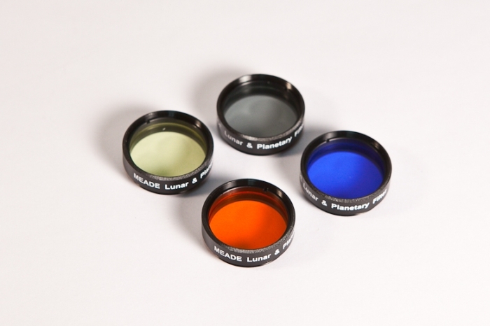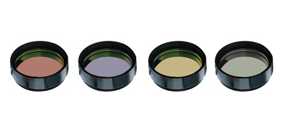 Набор цветных светофильтров (красный, желтый, синий и нейтральный) для наблюдений планет и Луны. Эти фильтры могут использоваться с окулярами стандарта 1,25”, имеющими на внутренней стороне юбки резьбу для установки светофильтров. Нейтральный фильтр используется для наблюдений Луны в больших фазах – он ослабляет слепящий блеск лунной поверхности, благодаря чему глаза наблюдателя меньше устают, и повышается общая контрастность изображения. Красный фильтр используется для наблюдений Марса (увеличивает контраст полярных шапок и темных областей), Юпитера и Сатурна – для выявления деталей в атмосфере этих планет (с телескопами диаметром 200 мм и более). Желтый светофильтр полезен для выявления мелких деталей в атмосфере Юпитера, увеличивает контраст некоторых деталей поверхности Луны и деления Кассини в кольцах Сатурна. Синий светофильтр обычно используется для улучшения деталей поверхности Марса, пылевых бурь и облаков, на Юпитере усиливает границы между поясами и светлыми зонами, помогает рассмотреть Большое красное пятно, выявить детали в поясах и полярных областях Сатурна (в телескопы от 200 мм). Комплектация: