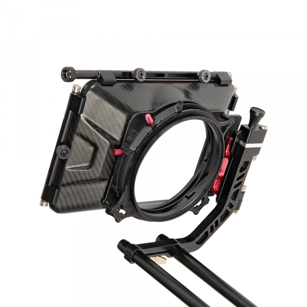 Обвес GreenBean Rig System 05 PRO для камеры Конструкция В качестве основы обвеса используются два алюминиевых суппорта (направляющие) диаметром 15 мм и длиной 440 мм, на которые «навешиваются» все остальные компоненты обвеса: ручки, площадка для камеры, компендиум, опора объектива, плечевой упор. Для удлинения суппортов, в комплекте с ригом идут два дополнительных суппорта длиной 100 мм с двухсторонними винтами. Все элементы обвеса (кроме резиновых накладок на рукоятки и плечевой накладки) изготовлены из алюминиевого сплава на высокоточном CNC оборудовании. Бесчисленное количество положений, в которые можно установить и зафиксировать все элементы обвеса, позволят подобрать оптимальную конфигурацию рига. Все затяжные барашки изготовлены из алюминиевого сплава и имеют храповой механизм. Компендиум Компендиум (9″ х 6″) устанавливается перед объективом и служит в качестве бленды и для установки светофильтров. Металлический светозащитный короб, регулируемый по высоте, имеет три поворотных шарнира для установки светозащитных шторок: двух боковых и одной верхней (козырька). Все шторки в шарнире имеют надёжную винтовую фиксацию. Более того, предусмотрена возможность изменить геометрию боковых шторок для предотвращения засветки при работе с объективами с разным фокусным расстоянием. Геометрия козырька — неизменяемая. За светозащитным коробом находятся кассета для двух светофильтров. Светофильры (размер 4″ х 4″) устанавливаются в оправу, фиксируются в ней подпружиненным штифтом и вместе с оправой устанавливаться в кассету. Одна оправа (ближняя к камере) имеет возможность вращаться вокруг своей оси, таким образом, можно установить поляризационный фильтр. Фиксация оправ в кассете — винтовая. Смена объектива осуществляется без снятия компендиума с суппортов. Поворотный шарнир позволяет просто откинуть компендиум в сторону на угол до 180°. С обратной стороны компендиума закреплено резиновое кольцо с отверстием под объектив камеры диаметром 86 мм (допустимый максимально возможный диаметр объектива составляет 131 мм — со снятым резиновым кольцом). Ручки В комплекте обвеса предусмотрены ручки: нижняя (с двумя рукоятками) и верхняя захват-ручка. Ручки быстросъёмные, установить их возможно на левую или правую сторону. Фиксация ручек на суппортах винтовая. Для удобства хвата, ручки имеют резиновые рукоятки. Для облегчения конструкции, нижняя ручка имеет отверстия и проточки. Нижние ручки также можно установить на 19 мм суппорта. Для установки дополнительного оборудования на риг, верхняя захват-ручка снабжена 12-ю отверстиями с резьбой 1/4″. Изменить направление рукояток и подобрать их оптимальное положение позволяют шарниры, находящиеся на плечах ручек. Шарниры ручек имеют зубчатое соединение, что полностью исключает люфт и прокручивание при работе. Установка камеры Установка камеры производится на базу (baseplate) с помощью быстросъёмной площадки. База может передвигаться вдоль суппортов и фиксироваться в выбранном положении на два винтовых фиксатора. Её также можно отрегулировать по высоте, для этого в комплекте предусмотрены шестигранные ключи. Быстросъёмная площадка Т-образной формы устанавливается в базу и фиксируется на винтовой фиксатор. Для предотвращения её выпадения из базы предназначен подпружиненный предохранитель с кнопкой. Х