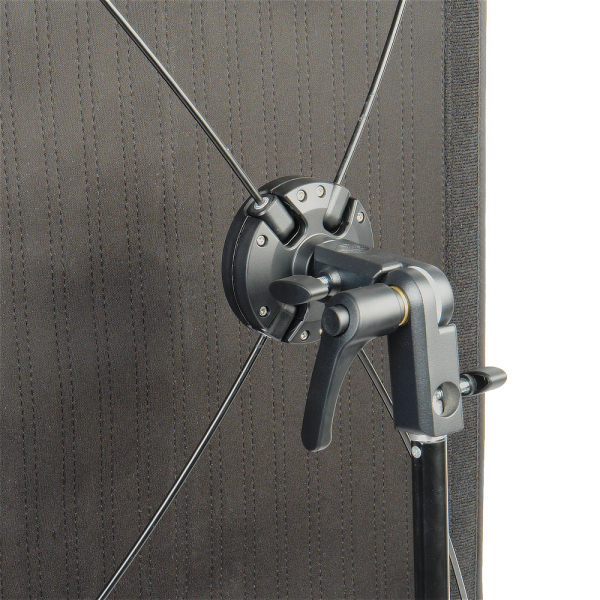 Для питания осветителя можно использовать батарею V-mount (приобретается отдельно) или источник постоянного тока. В комплект входит складной держатель X-mount для легкой установки осветителя и сумка для переноски и хранения.