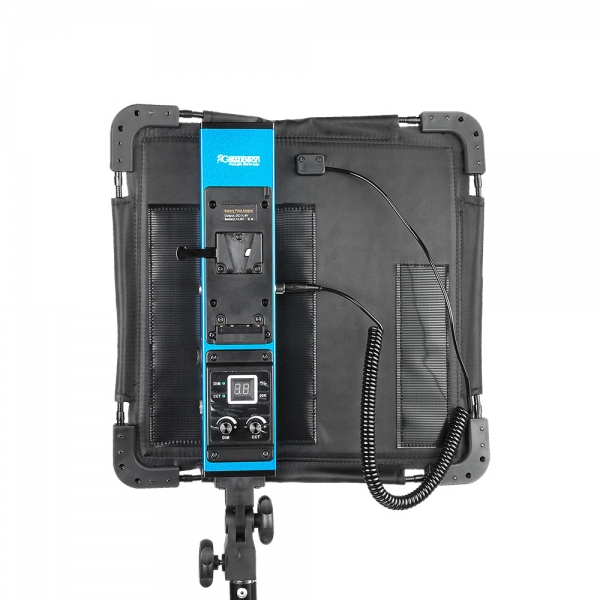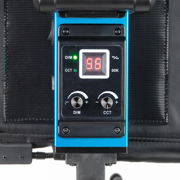 Мощность светового потока, а также цветовая температура плавно регулируются при помощи модуля управления, получающего питание от аккумуляторов V-mount или бытовой сети 220В. Модуль управления может быть размещен на самой панели при помощи липучек, либо отсоединен от нее для облегчения веса. Во втором случае управляющий сигнал мощностью светового потока и цветовой температурой передается по специальному витому кабелю, входящему в комплект. Для удобства пользования на корпусе модуля имеется цифровой дисплей и индикаторы состояния дисплея. Приобрести осветитель GreenBean FreeLight 288 bi-color светодиодный можно как для съемки в студии, так и для выездных съемок — кинопроизводства, телевидения, свадебных видеосъемок.