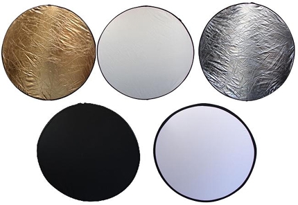 Мультиотражатель 5 в 1, диаметр 80см. 5 цветов: просветный, черный, белый, серебряный, золотой. |