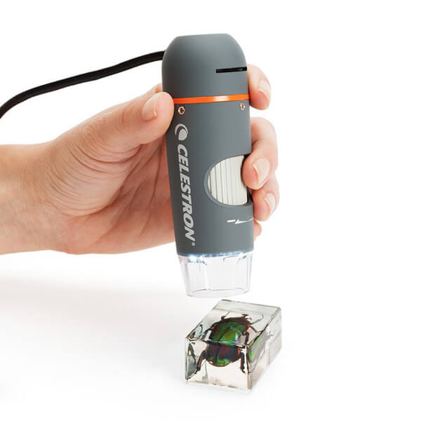 Длинный кабель USB 2.0 позволяет удобно подключить микроскоп к компьютеру или ноутбуку. Изучение образцов и обработка изображения происходит с помощью программы Micro Capture Pro. Помимо записи и редактирования фотографий и видеороликов, программа умеет измерять длину , периметр, радиус, диаметр объекта, а также разнообразные углы. Этот микроскоп можно применять в различных производственных работах, для проверки качества или проверки размеров. Портативный цифровой микроскоп Celestron PRO очень прост в использовании. Небольшие размеры микроскопа делают его очень удобным для домашнего использования. Так же микроскоп подходит для использования в учебном процессе в школах и других учебных заведениях. Купите такой микроскоп в подарок, возьмите микроскоп с собой на отдых, в путешествие.