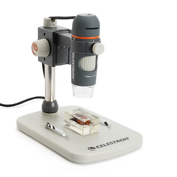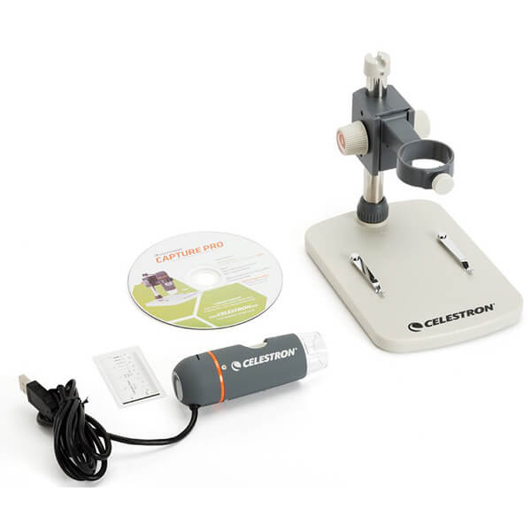 Портативный цифровой микроскоп Celestron PRO - это профессиональный цифровой микроскоп, предназначенный как для очень точных работ, так и для любительских наблюдений. Встроенная цифровая камера с разрешением 5 Мп позволяет снимать качественные фотографии и видеоролики, загружать их в компьютер для хранения, обработки и обмена с другими людьми. Микроскоп комплектуется специальным штативом и предметным столиком с двумя стальными зажимами, а регулируемый светодиодный осветитель позволяет добиться наилучшей освещенности объекта наблюдения.