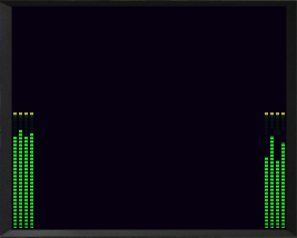 - Audio Level Meter — (аудиометр). Индикатор уровня звукового сигнала. Поддерживает до 16-ти каналов эмбедированного аудиосигнала. Одновременно на дисплее могут отображаться от 2-х до 8-ми индикаторов уровня аудиосигнала.
