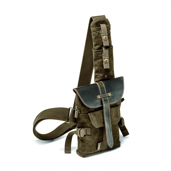 Имиджевый и удобный слинг для повседневного использования. Обновленная модель популярной серии Africa. Стильный дизайн, высококачественные материалы и фирменная винтажная фурнитура. Прочный брезент идеально сочетается со вставками и ремнями из натуральной кожи. Имеет два небольших кармана на ремне, передний и задний карманы для различных аксессуаров, основное отделение для компактной фотокамеры и личных вещей. Комплектуется съемным защитным чехлом. Мягкая, дышащая ткань на спине обеспечивает комфортное ношение. Характеристики