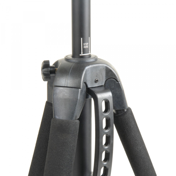Благодаря верхней растяжке, подготовка штатива к работе и его выравнивание на поверхности происходит быстро и легко. Растяжка фиксируется в выбранном положении и обеспечивает устойчивость во время работы со штативом; кроме того, меняя положение фиксатора растяжки, можно регулировать (и фиксировать) угол раскрытия ножек штатива.