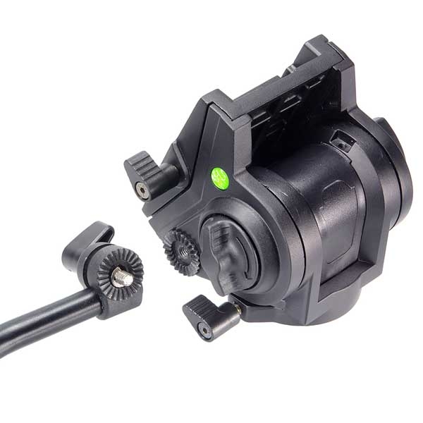 Видеоголова может монтироваться на фото/видео штативы, слайдеры, краны и моноподы с установочной резьбой 3/8 дюйма. Быстросъёмная площадка оснащена резьбовыми креплениями для камер на 1/4 и 3/8 дюйма, и имеет механизм скольжения, который позволит сбалансировать камеру по центру тяжести. Предохранительная защелка площадки убережет камеру от возможного выскальзывания. Встроенный спиртовой уровень поможет выровнять камеру по горизонту. Переставляемая обрезиненная рукоятка обеспечит дополнительное удобство при съемке и может быть установлена как для правой, так и для левой руки.