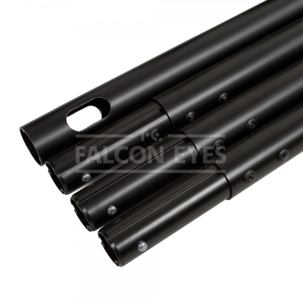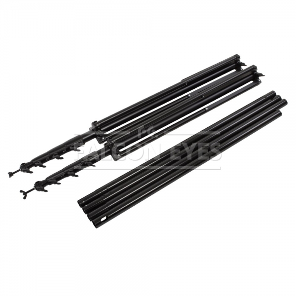 Система установки тканевого фона поставляется в комплекте из двух стоек и складной перекладины. Разборная конструкция укладывается в сумку для переноски.