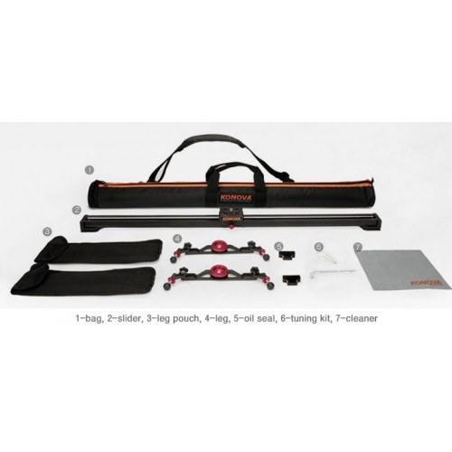 - Слайдер изготовлен корейской компанией Konova в соответствии со всеми современными стандартами качества. - Слайдер прочно и надежно фиксирует камеру, предотвращая появление тряски в кадре - Результат отличается четкостью и высоким качеством - Каркас изготовлен на заводе компании Samsung - Подходит как для видео, так и для фото съемки - Основание оборудовано тремя парными отверстиями для крепежных винтов 1/4" и 3/8" - Слайдер подойдет как для домашней и любительской съемки, так и для профессиональной - В комплекте поставляются два масляных сальника для очищения рельс от пыли и воды - Рекомендуемые головки для камеры: 0529H, 0570H, MANFROTTO 701/501/503 - Слайдер совместим со следующими моделями камер: Canon 7D, Canon 5D Mark2, Canon 60D, Canon 500D~600D, Nikon D800, D7000, Sony A77 и т.д. - Поставляется в комплекте с АС адаптером