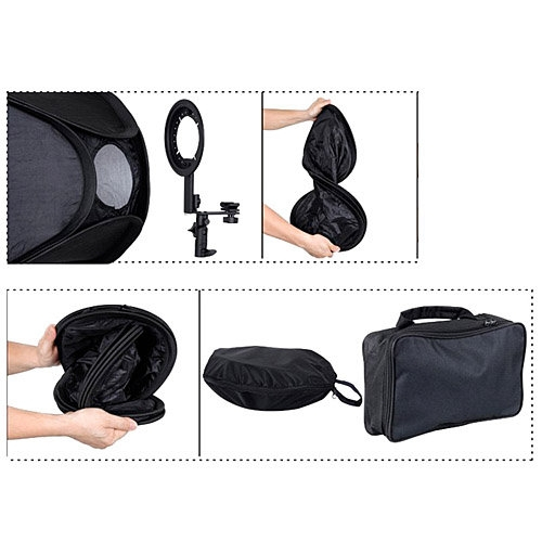 Софтбокс для вспышек 80x80 см Fujimi FJS-80 Складной софт-бокс для накамерных вспышек идеальное решение для выездной или strobist – съемки. Быстро складывается (размер в сложенном виде в чехле около 17 см) и легко собирается, упаковывается в компактную сумку (идет в наборе) и менее чем за минуту готовится к фотосъемке. Софтбокс дает мягкий и ровный заполняющий свет преобразуя жесткий свет фотовспышки. Универсальные размеры софтбоксов оптимальны для использования в любых студиях, на выезде, дома. Подходит для съемки любых объектов, в портретной или предметной фотографии. В комплекте: