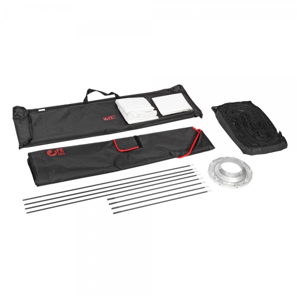 Несущий каркас включает в себя литой алюминиевый адаптер, стальные спицы с наконечниками и сменное байонетное кольцо на Bowens. Для установки SBQ-120180 BW на осветительные приборы с другим байонетом можно использовать переходные кольца (приобретаются отдельно, диаметр 145 мм).