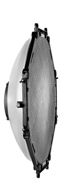 Соты дают возможность точно контролировать направление и распространение света, изменять угол распространения света, смягчая резкие тени. То есть сотовый фильтр смягчает жесткий свет, одновременно позволяя изменить угол рассеивания. Данный сотовый фильтр диаметром 44 см, предназначенный для малых портретных тарелок белых и серебристых арт. 26168 и 26166.