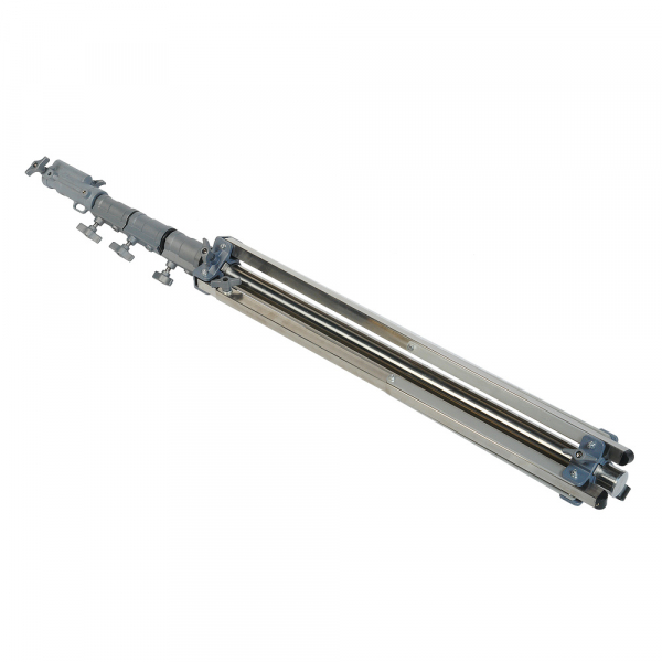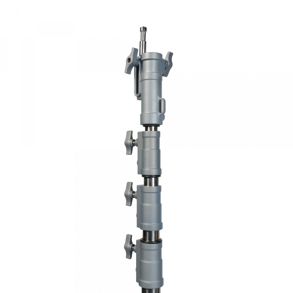 • Телескопическая колонна из 4 секций диаметром 45, 40, 35 и 30 мм надежно соединяются между собой металлическими винтовыми зажимами. Между секциями предусмотрены амортизирующие резиновые кольца.