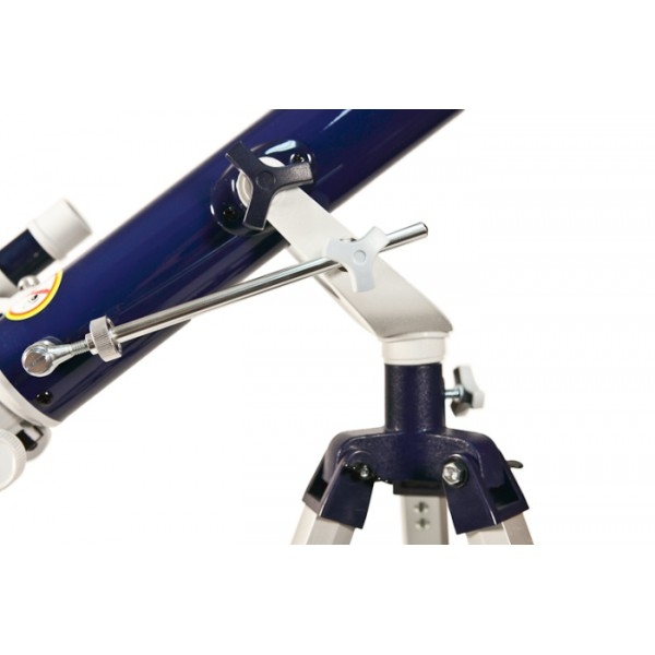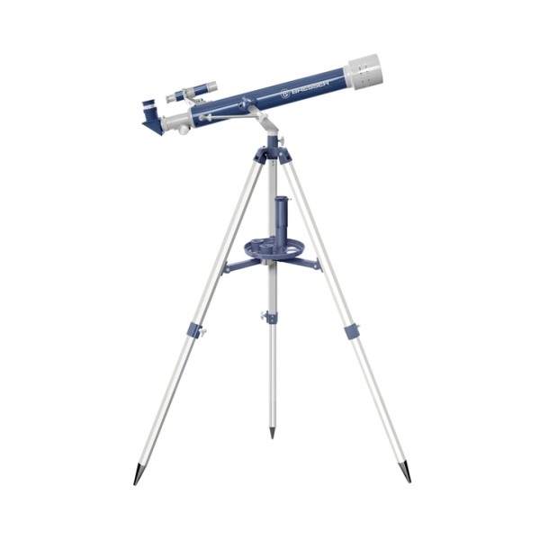 Модель Bresser Junior Refractor 60/700 blu представляет собой телескоп-рефрактор. Производитель рекомендует его использование детям от восьми лет. Телескоп оборудован оборачивающей призмой 1,5х. Это позволит юному исследователю быстро и легко превратить рефрактор в подзорную трубу для наблюдений уже за наземными объектами. На оптическое стекло, использованное в объективе, нанесено просветляющее покрытие. Это дает возможность добиться более четкого изображения при работе с телескопом. На данной модели рефрактора, как и на старших его собратьях, уже установлен искатель, способный оказать неоценимую помощь в наблюдении за движением астрономических тел. В комплект входят дополнительные окуляры K-20мм, K-12,5мм и K-4мм, астрономическая программа, аксессуары для ведения наземных наблюдений, а также легкая в эксплуатации монтировка азимутального типа.