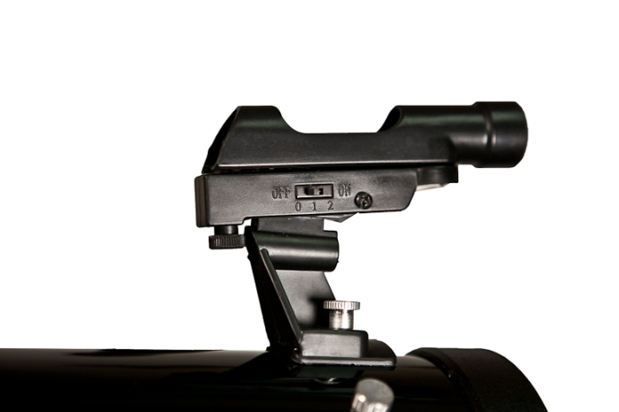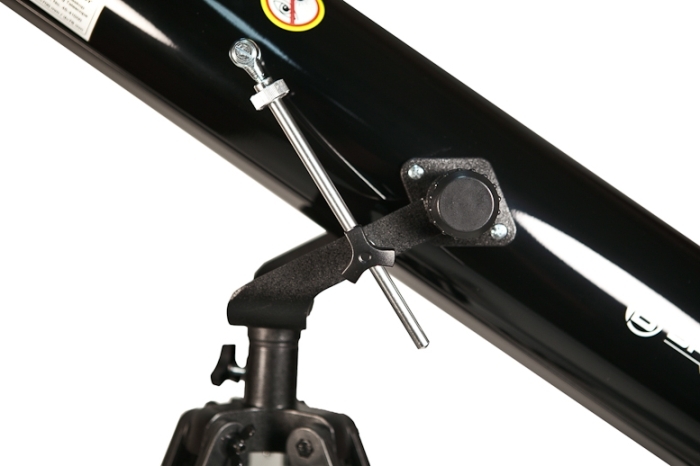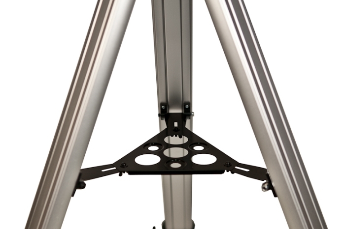 Монтировка снабжена микрометрическим винтом по высоте, который облегчает слежение за звездами. Она имеет легкий и плавный ход, что способствует более четкому наведению и повышает комфорт при работе. Штатив алюминиевый, регулируется по высоте. Имеет полочку для принадлежностей, что очень удобно: во время наблюдений вы можете положить туда, например, ненужные окуляры или линзу Барлоу.