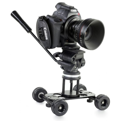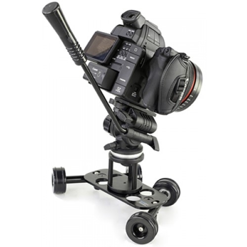 Это устройство представляет собой мини-тележку для съемки, позволяющую получать плавное движение в кадре. Тележка устанавливается на любую ровную горизонтальную поверхность. В отличие от других, более громоздких конструкций, при своих небольших размерах занимает меньше пространства. Быстро разбирается и собирается, легко настраивается.