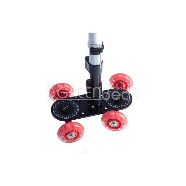 Тележка (скейтер) Dolly 1 предназначена для установки видеооборудования и получения плавного движение в кадре с изменением перспективы.Часто тележку Dolly 1 используют для предметной съемки, иногда ей можно заменить слайдер (если позволяет поверхность). Для работы с тележкой подходит любая ровная поверхность – стол (в т.ч. бильярдный), пол, длинная доска и т.д. Тележка Dolly 1 быстро разбирается и легко настраивается. Может двигаться прямо или по кругу. Точность выставления осей колес легко проверить по нанесенным шкалам. Штативная головка может устанавливаться прямо на базовой пластине (крепежные винты 3/8 дюйма и ¼ дюйма – выбираются подходящие). На пластине имеются четыре отверстия 1/4 дюйма для крепления «навесного оборудования».