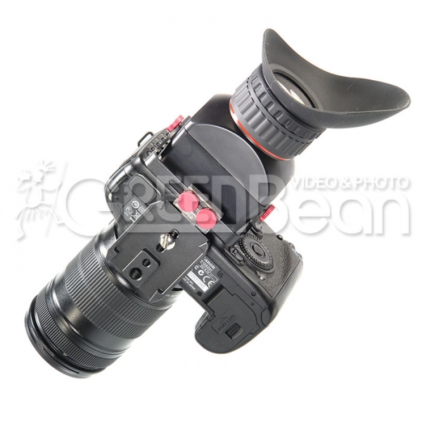GreenBean VF-3X PRO – предназначен для установки на зеркальные камеры с 3"/3.2" ЖК-экраном. Фокусирующая линза с 3-x кратным увеличением. На окуляре находится кольцо диоптрийной коррекции, это поможет настроить изображение под индивидуальные особенности зрения. Видоискатель соединяется с площадкой, установленной на камере, с помощью магнитного быстросъемного крепления. Рамка, соединяющая видоискатель и площадку, позволяет отрегулировать положение видоискателя в пространстве и имеет возможность движения в направлениях вверх/ вниз / влево / вправо. Если необходим быстрый доступ к ЖК-экрану без демонтажа видоискателя, можно откинуть окуляр вверх и легко получить к нему доступ. Положение видоискателя регулируется по вертикали и горизонтали (относительно площадки) в пределах 20 мм.