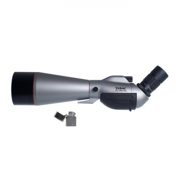 Профессиональная зрительная труба Veber 25-100x100 оснащена великолепной оптикой с многослойным просветлением и обеспечивает увеличение от 25 до 100 крат. Оптическая система обладает отличным (более 85%) показателем светопропускания, что позволяет вести наблюдение в сумерках. Великолепное разрешение по центру и по краю, полное отсутствие искажений и "окрашенности" изображения даже на самом краю поля зрения. Управление: трансфокатор расположен в окулярной части, барабанчик точной фокусировки - на верхней части корпуса под работу указательным пальцем правой руки.